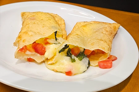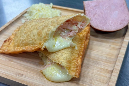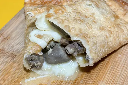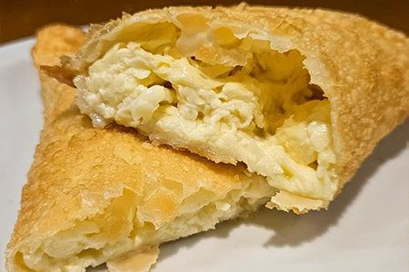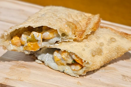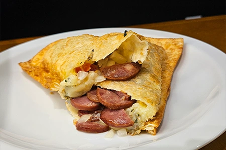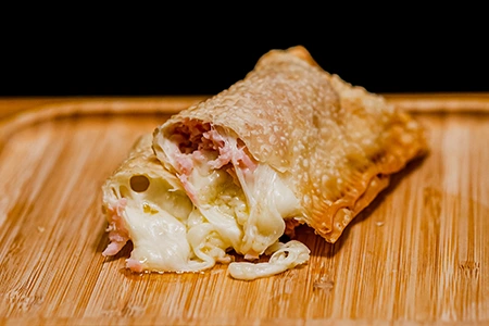 Muçarela, catupiry, bacon, ovos e alho torrado.